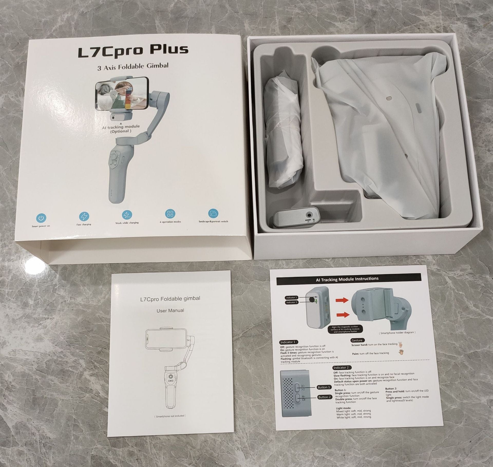 Packing List: L7C Pro folding PTZ,type-c charging cable, manual
